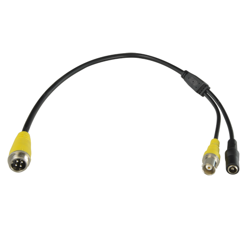 Dispone de una entrada macho de BNC para conectar a un videograbador, y 1 salida hembra de conector de aviación . Permite utilizar cámaras móviles con conector macho de aviación en un videograbador convencional de la gama X-Security.